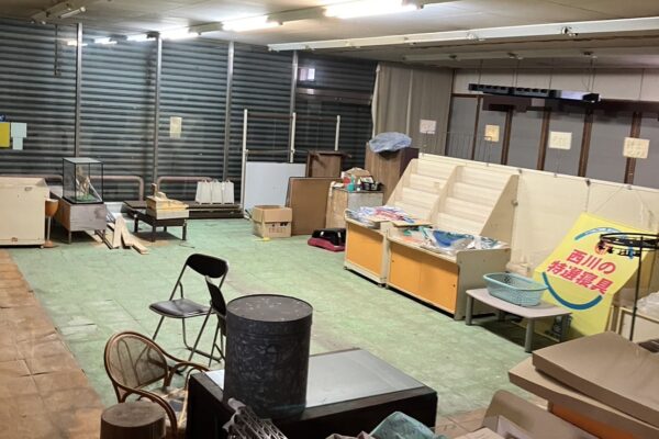 店舗部分はこのような内装になっています。雨漏りしている箇所がありますね。