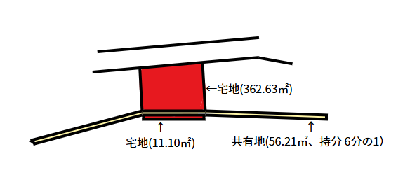 本物件は土地と土地の間に共有地が挟まっている物件となっています。